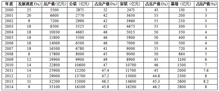 2000~2014年建筑裝飾行業(yè)產(chǎn)值 表2