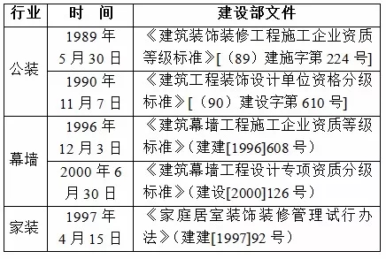 住建部歷年持續(xù)公布了有關(guān)建筑裝飾市場(chǎng)和行業(yè)管理的一系列行業(yè)規(guī)章,均作了細(xì)分。